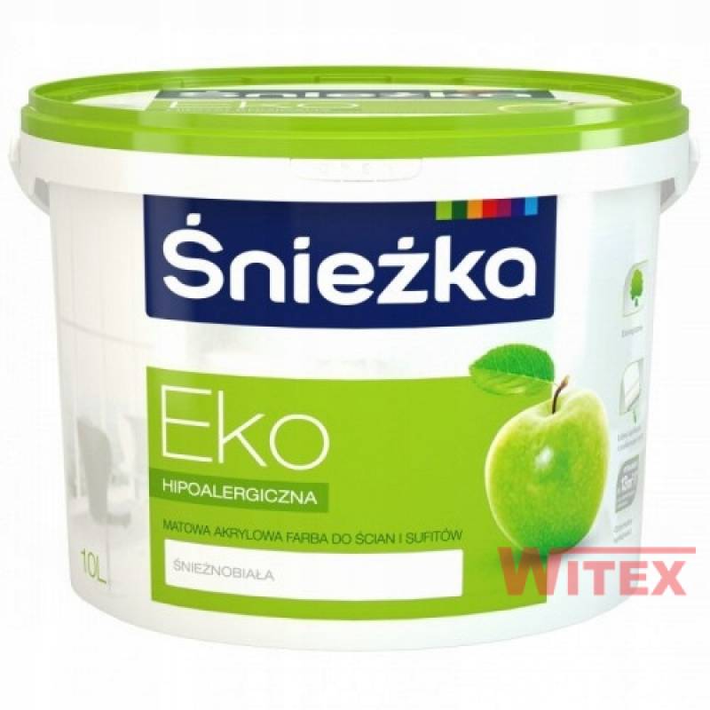 ŚNIEŻKA EKO Śnieżnobiała jest zawiesiną pigmentów i wypełniaczy w wodnej dyspersji żywicy akrylowej z dodatkiem środków wspomagających i uszlachetniających.