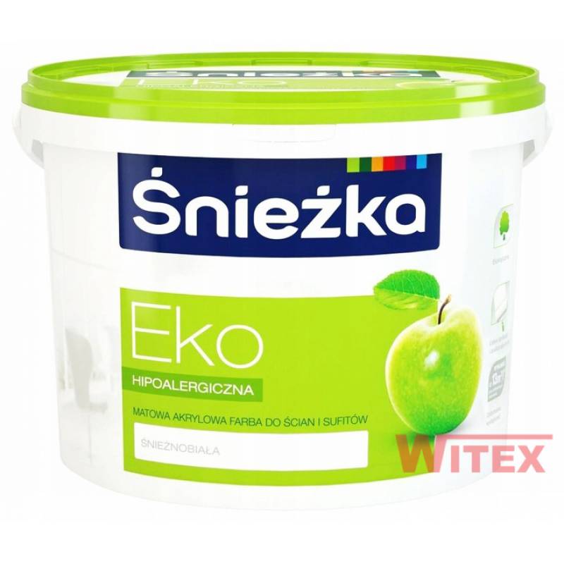 - Farba Akrylowa Eko Biały Śnieżka daje matowe, śnieżnobiałe i w pełni pozwalające "oddychać ścianom" powłoki.