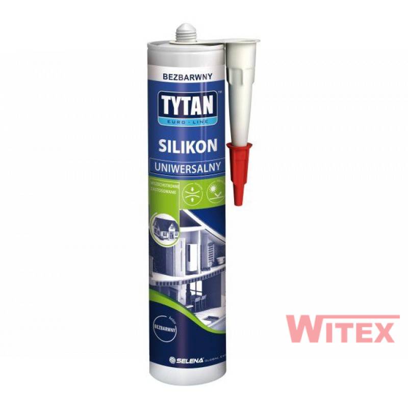 TYTAN SILIKON UNIWERSALNY - Trwale elastyczny, łatwy w użyciu silikon o kwaśnym systemie utwardzania. Doskonale nadaje się do zastosowania wewnątrz i na zewnątrz pomieszczeń. Odporny na promieniowanie UV i zmienne warunki atmosferyczne. Tworzy trwałą i wodoszczelną spoinę, zabezpieczającą szczeliny przed wnikaniem wilgoci i powietrza.