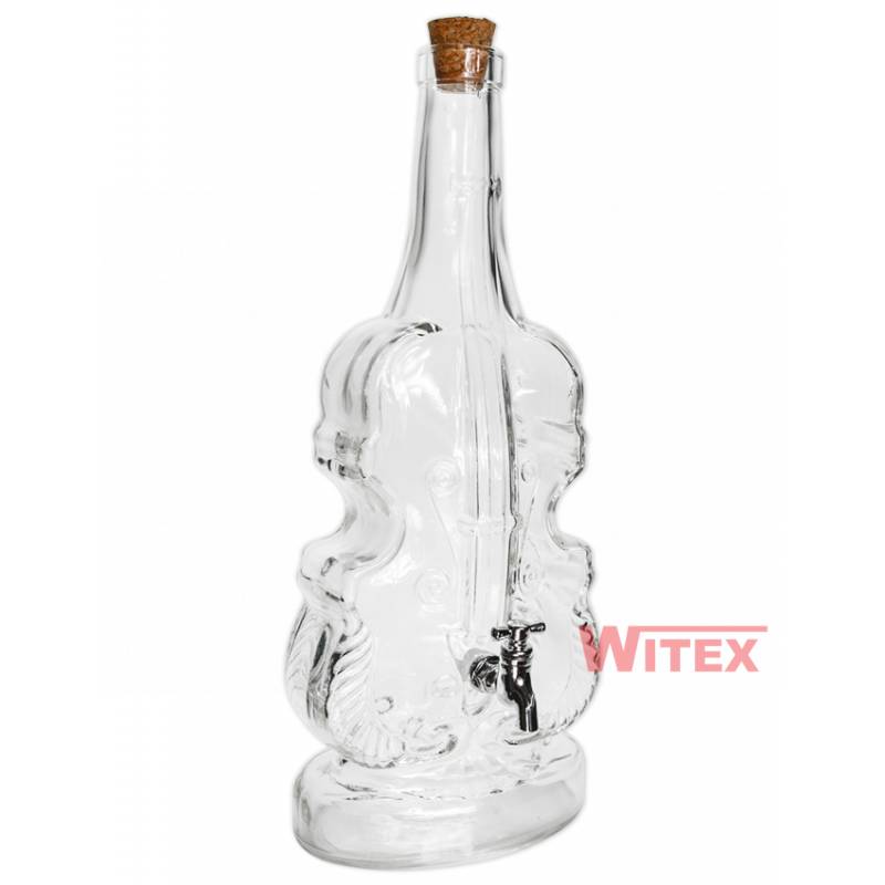 Karafka butelka w kształcie SKRZYPIEC z KRANIKIEM 1.5L wykonana z grubego, zdobionego szkła.