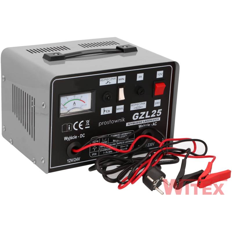 Prostownik GZL-25 z funkcją szybkiego ładowania przeznaczony do ładowania akumulatorów kwasowo-ołowiowych 12V i 24V