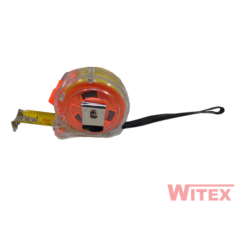 Miarka o długości 7,5 m z przyciskiem blokującym. Miarka posiada pasek (smycz), z tyłu znajduje się metalowy zaczep np. do spodni.